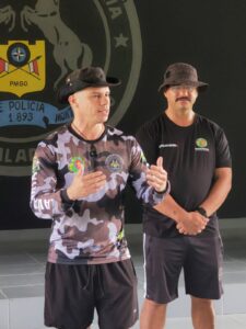 Ir. Leandro Carvalho Sgt. da Polícia Militar dando instruções aos visitantes